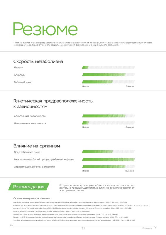| Рацион питания Метаболизм алкоголя Метаболизм кофеина Физическая нагрузка Непереносимости Вкусовые ощущения Никотин Психологические зависимости Пищевое поведение Потребность в витаминах Уровень холестерина Спортивный потенциал | Рацион питания Метаболизм алкоголя Метаболизм кофеина Физическая нагрузка Непереносимости Вкусовые ощущения Никотин Психологические зависимости Пищевое поведение Потребность в витаминах Уровень холестерина Спортивный потенциал | Рацион питания Метаболизм алкоголя Метаболизм кофеина Физическая нагрузка Непереносимости Вкусовые ощущения Никотин Психологические зависимости Пищевое поведение Потребность в витаминах Уровень холестерина Спортивный потенциал |