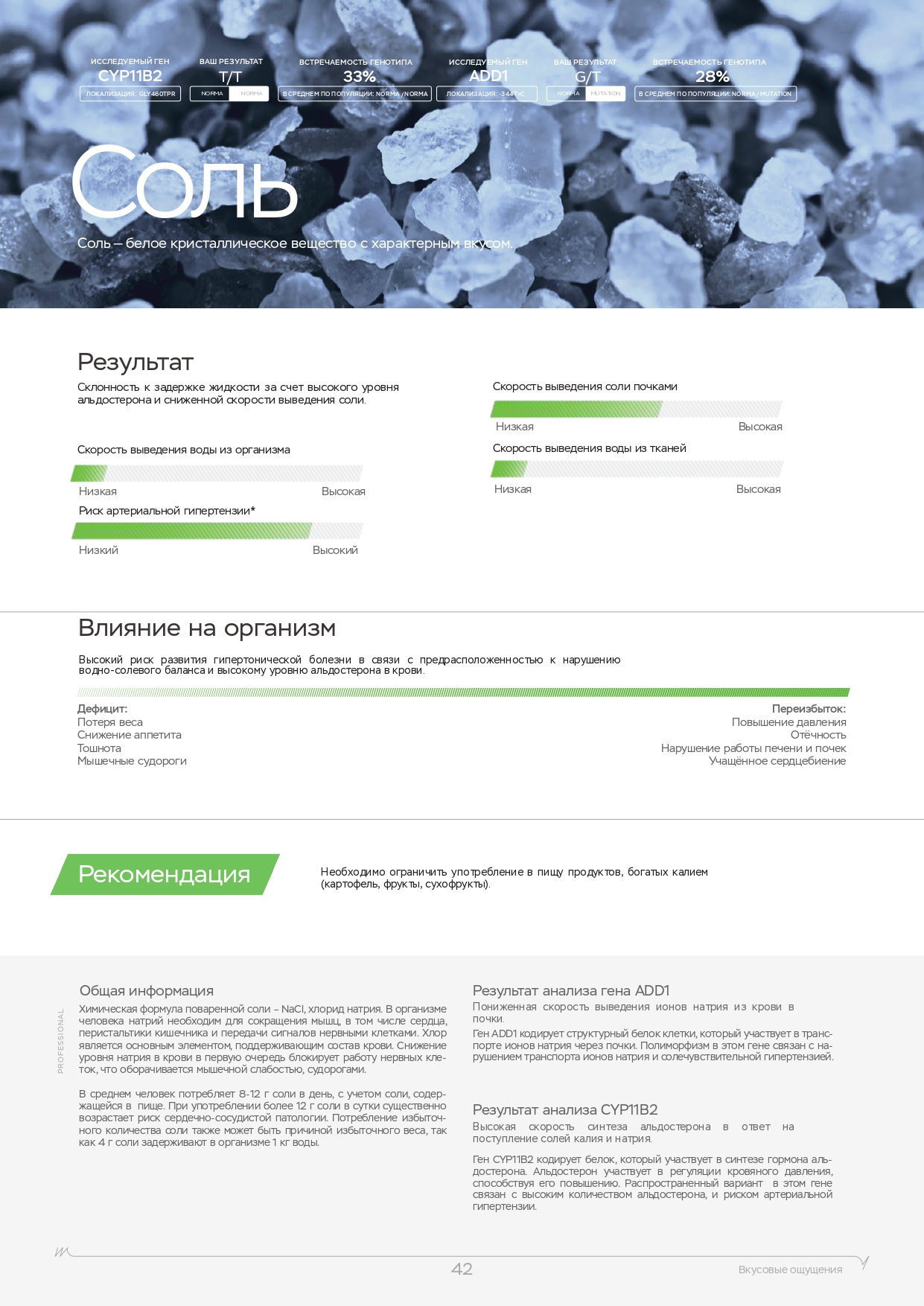 Этот ДНК анализ показывает влияние наиболее важных 10 генов на психическое и эмоциональное состояние. Именно они регулируют выработку гормонов, работу нейромедиаторов. Используйте знания о природных свойствах своего организма для борьбы со стрессом, повышения работоспособности и общего тонуса. Каждый человек индивидуален, поэтому мы рекомендуем пройти наш генетический нейро тест в Нижнем Ломове.